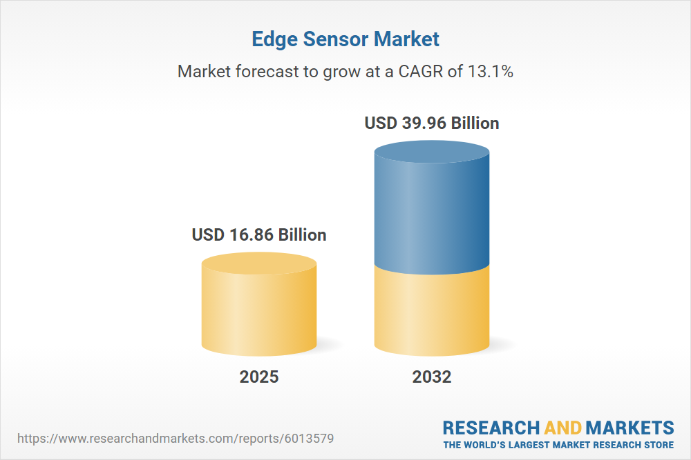 The Edge Sensor Market grew from USD 14.88 billion in 2024 to USD 16.86 billion in 2025. It is expected to continue growing at a CAGR of 13.14%, reaching USD 39.96 billion by 2032. This trajectory is driven by exponential demand for real-time analytics in sectors such as manufacturing, healthcare, automotive, and smart infrastructure. Technology enablers including miniaturization, embedded AI, secure connectivity, and the global expansion of IoT are propelling edge sensors to the forefront of digital operations.