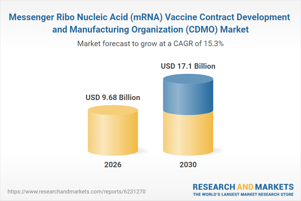 Messenger Ribo Nucleic Acid (mRNA) Vaccine Contract Development and Manufacturing Organization (CDMO) Market Global Report 2026 provides strategists, marketers and senior management with the critical information they need to assess the market.This report focuses messenger ribo nucleic acid (mrna) vaccine contract development and manufacturing organization (cdmo) market which is experiencing strong growth. The report gives a guide to the trends which will be shaping the market over the next ten years and beyond.